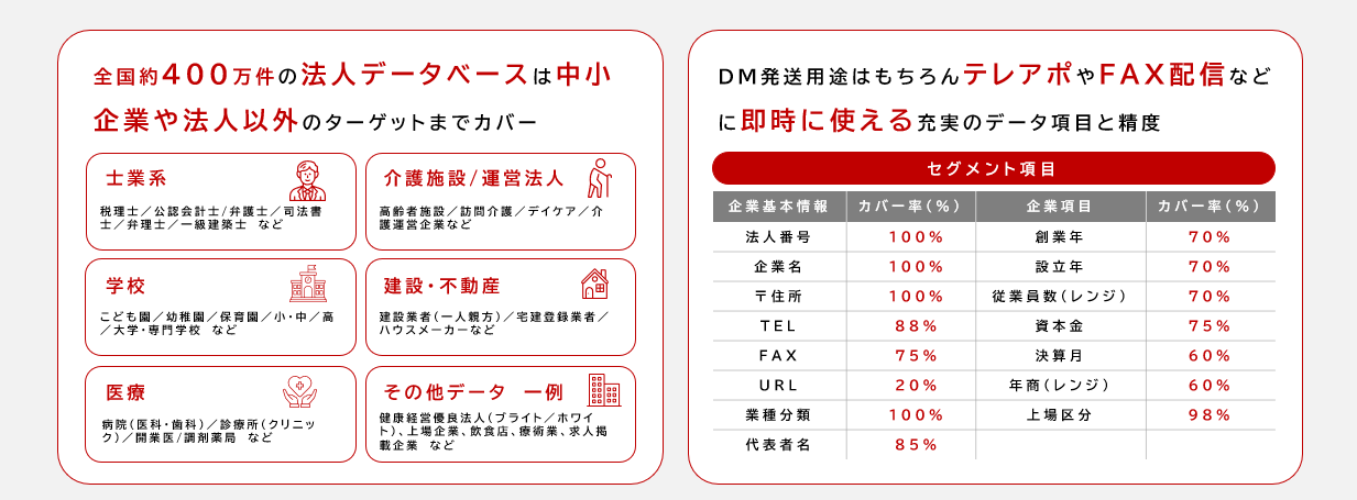 メールカスタマーセンターでは、既存リストのブラッシュアップや重複・不備チェック、外部データを使った補完・セグメント抽出まで対応し、