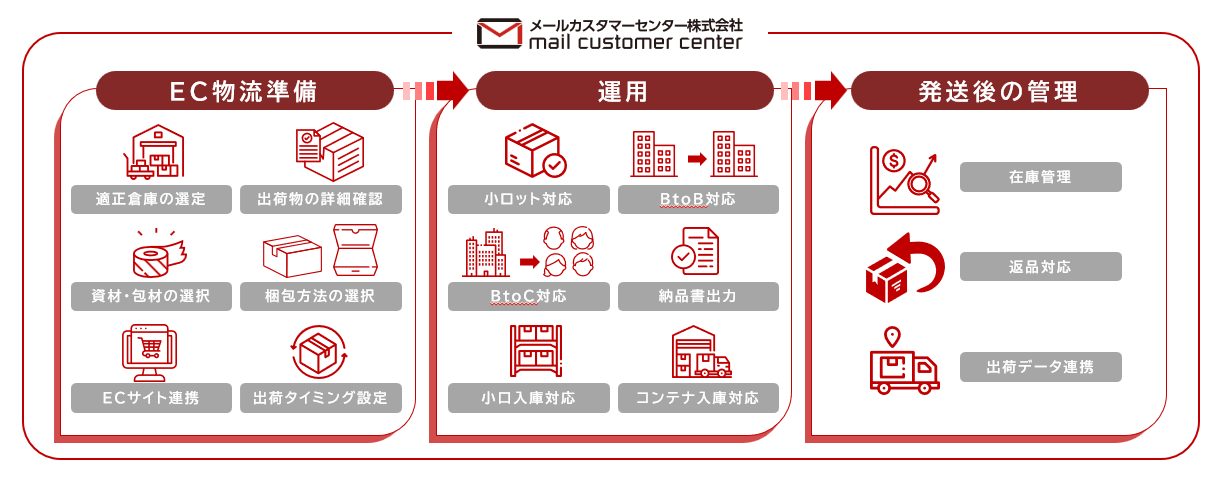 そこでメールカスタマーセンターは全国の倉庫ネットワークと各配送キャリアを活用し、
